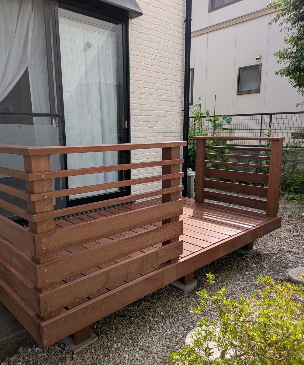 住宅用のウッドデッキや目隠しフェンス、カーポートを利用したデッキなどの設計企画と施工工事は定評があります。 該当ページはカーポートデッキ施工目隠しフェンス高耐久ウッドデッキ