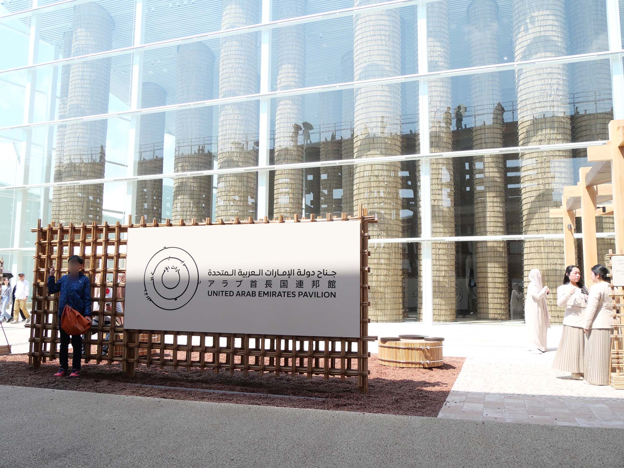 万博会場で最初に訪れたアラブ首長国連邦(UAE)パビリオンは、ガラス越しに巨大な柱が林立し、まるで神殿のようでした。 それら90本の柱はすべてナツメヤシの葉軸で覆われ、使用された葉軸は200万本以上。UAE国内外から材料の提供を受け、万博の助け合い精神を体現していました。 館内に足を踏み入れると、まず落ち着いた香りに包まれました。柱が天井高く16メートルまで伸び、囲まれる空間には守られているような安心感がありました。 また、伝統建築「アリーシュ」(ナツメヤシの葉で編んだ壁と屋根を備えた伝統家屋)と現代建築を融合した空間で、自然素材の温もりが全体に感じられました。 パビリオンでは伝統文化だけでなく、宇宙開発や再生可能エネルギーなど先進技術も紹介されていました。太陽の動きに合わせて回転するソーラーパネルや、羊・ラクダの毛で作った織物など、伝統とテクノロジーの融合に強い印象を受けました。 また、1970年大阪万博のアブダビ館模型も展示されており、なつかしく思いだすとともに、UAEの歩みを垣間見ることができました。 奥のシアターでは、3面スクリーンで現代UAEの人々の暮らしと自然とのつながりを描く映像が上映されていました。中央に敷かれた大きな絨毯に腰をおろして鑑賞すると、まるでオアシスでくつろいでいるような心地よさがありました。彼らにとってオアシスとは単なる水辺ではなく、「人が安心してくつろげる場所」なのだそうです。 レストランではデーツとガーワ(アラビックコーヒー)でもてなしを受け、スパイスでマリネした魚料理や空洞のパン「カミール」など本場の味も堪能しました。 デーツは日本のスパーでも売られていますので、一時期よく食べていましたが、館内でより新鮮に感じました。甘いデーツと香ばしいコーヒーの組み合わせは中東文化の象徴でした。 パビリオンを出る頃には、ナツメヤシが単なる用材や果実ではなく、UAEの暮らし・建築・精神性を支える「聖なる木」なのだと実感しました。静かでどこか懐かしく、心が満たされる空間体験でした。 現在でも比較的入場しやすいパビリオンです。