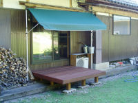 デッキセットをお送りいただきありがとうございました。完璧なカットと丁寧にも練習キットまで入れていただき、感謝しています。「月見酒デッキ」と命名しています。もう少し涼しくなったらここで七輪で焼き物しながら月見酒です。隣には薪ストーブ用の薪が並んでいます。制作には、土台に1人で2時間、組み立てはのんびり2人で3時間でした。組み立てはすこぶる簡単で、最初から自分でも出来そうな気がしますが、ウリン材は素人には簡単にカットできませんから大正解ですね。今はこの写真に屋根がついています。