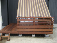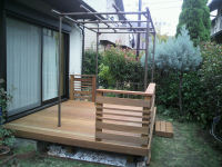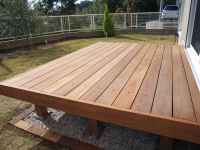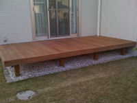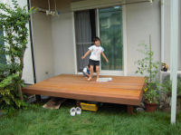 注文当初は、自分一人でウッドデッキなんか完成するのかな…って半信半疑の状態で始めましたが、作っているうちにだんだん作業も楽しくなり、形が出来てくると、なんだか嬉しくなりました。一歳になる子供の為にも頑張って早く完成しようとしましたが、夏の暑さに負け一人作業で約3日掛かりました。解らない所は、メールで問い合わせると親切に、解りやすく教えて頂きました。