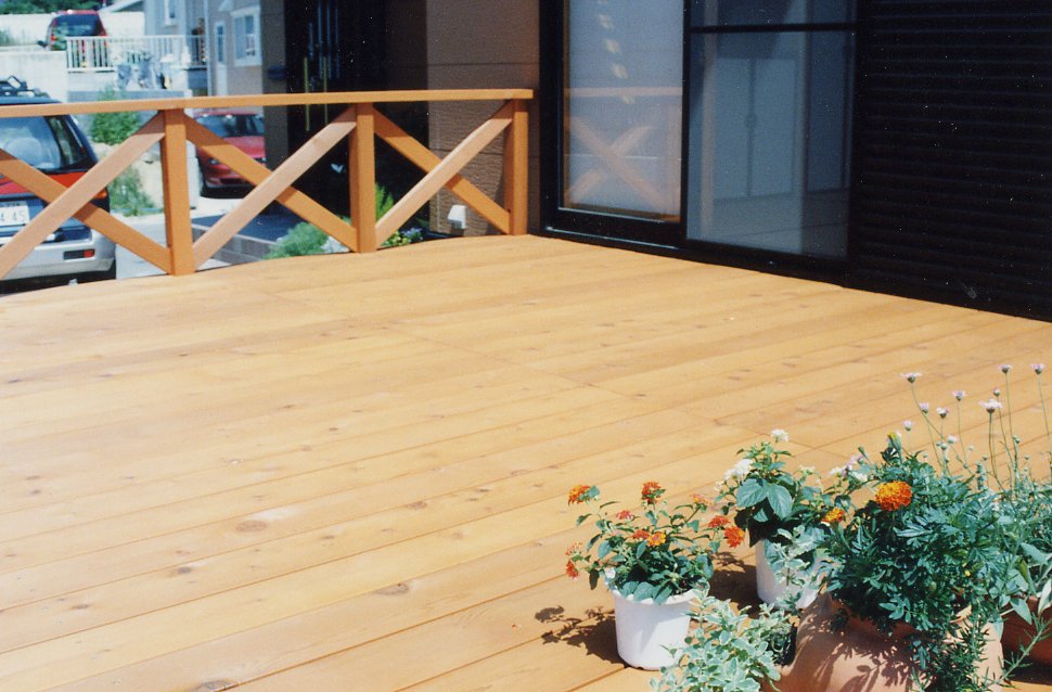 何とか完成でき、思い通りのアウトスペースが広がったと喜んでいます。イペ材は、外構業者にお願いして、平板と組み合わせガレージしてもらいました。(残った部材は、物干しの下に敷きました)デッキ部分も基礎に時間がかかり大変でしたが昨日の大人15人のバーべーキューパーティーにもびくともしない出来栄えに大満足です。また、ウッドフェアのような楽しいイベントがあれば、ぜひお知らせ下さい。