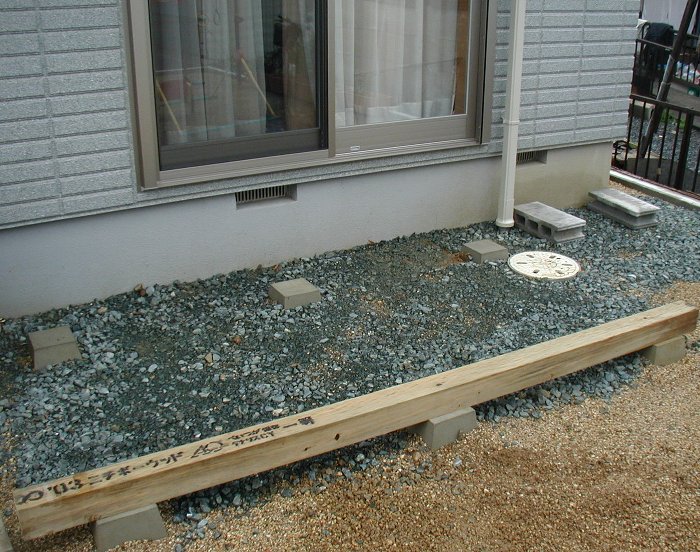 (基礎)事前に束石の配置寸法がわかっていたので、束石の埋め込みと水平 出しは何日かかけてのんびりやりました。(デッキ)鼻板をつける時だけ、家内に手伝ってもらいました。後はすべて1人でできました。5mmのスペースを入れるのに苦労しました。 最後の1枚のスペースがなくなってしまいました。無理矢理入れてもうまくいかないので、スペーサーをはずし、若干間隔を縮めてとりつけました。(手すり)1スパンだけ短く切る設計でした。担当の武田さんのアドバイスが参考になりましたが、 切断については、よりよい方法があります。それは、私の例では、穴あけの距離を663mmにしたので、 基準の876mm より、213mm短いことになる。そこで、ラチスパネル、下枠、笠木とも213mmカットするだけでよいという方法です。ご参考ください。 ガイドは両面テープが強力なので、すべてつかいませんでした。 またあ、ボルトが少し長いような気がしました。 いろいろ要望はしましたが、とても満足しています。なにより、簡単にできて、大工がつくったようにできる。 木の材質がすぐれているということです。 安いし、人にもすすめていい製品でした。ありがとうございました。