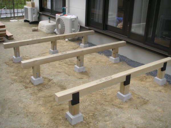 5月の連休を利用して、ウッドデッキを作成しました。皆様が感想で言われているように、基礎の水平だしに時間がかかりました。説明書にあるように、大引きを使い基礎の水平を確認する方法で行いましたが、基礎の数が多くなると時間と体力が必要と感じました。水糸等で水平を出して、基礎石を並べても良いかも知れません。基礎の水平だし後の組立作業は、順調に進み、インパクトドライバーだけで簡単に組み立てできました。ただ、最後、鼻隠しを取り付けた際に、板の真ん中が両端よりも1cmほど、沈んだ状態になってしました。板を取り付ける前に確認しておけばよかったと思います。ただし、この状態でも、ほとんど水平は出ています。今回、2790x2235の別注サイズを購入したのですが、板と板の間隔がほとんどないものがありました。そのため、すべての板を並べた際に、2cmほど短くなってしまう状態になりましたので、以後、改善いただければと思いいます。全体としては、しっかりしており、色合いも気に入っており、大変満足しています。今後も、ウッドデッキの増築を計画したいと思います。