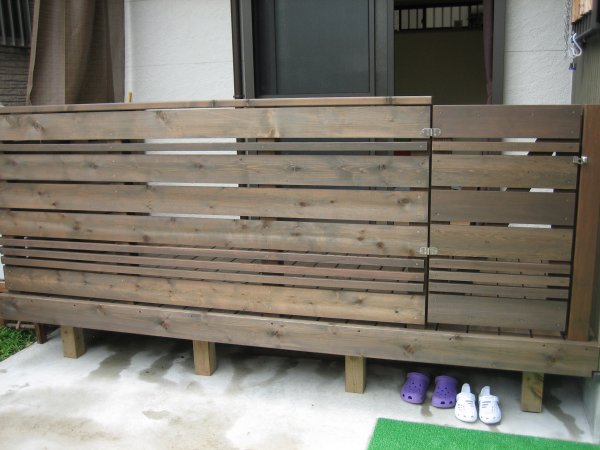 梅雨時なので天候が心配でしたが、運よく晴れて汗だくで作りました。借り物のインパクトドライバーのバッテリーが古くて充電を繰り返した為、作業時間は8時間掛かりました。道具がちゃんとしていれば、もっと早く終わったと思います。フェンスの作業時に妻に手伝ってもらい、その他は一人で組み立てました。出来映えはしっかりしていて、目隠しフェンスもとても良い感じで、色もよく家になじんでいます。1歳半の息子も大喜びではしゃいでいました。近所の人にも評判がよくてうれしいです。これからの季節はビールもおいしく、ウッドデッキで食事をする機会が多くなると思います。また十数年後に作り替えるときは御社にお願いしたいと思います。ありがとうございました。
