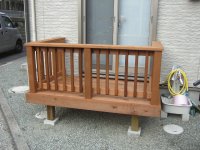 土曜日の午前11時頃に届いたので早速製作に取り掛かりました。 一人で、途中簡単に昼食をとりながら、午後5時には完成しました。 基礎部分が犬走りと階段(束は1本使用していません。)にあたるので、その分手間が省けたのと、事前に、束の高さを調整裁断、手摺の笠木の斜めカットをしていただいたので自分で調整したのは、鼻隠しの階段にかかる部分と手摺のクロスを2か所でしたので思ったより...