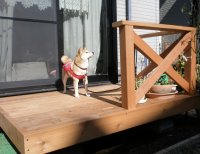 自宅新築時に、ホームセンターで2×4材を購入して自作したウッドデッキが10年経過し、老朽化したため、 今回、作り替えることにしました。前回は自分で設計して組み立てたため苦労しましたが、今回はあっけない ほど簡単に完成しました。もう少し広めでもよかったかな、と思いますが、まずまず満足してます。