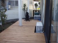 今回、ウッドデッキを購入するにあたって、ホームセンターやインターネット等で色々と探しましたが、最終的に中川木材産業さんのデッキを購入させて頂きました。最初は、木材を自分で加工して製作しようとも思っていたのですが、工具類の用意(購入)や手間を考えキットデッキを購入する事としました。実際の製作には殆ど一人で5時間程度で出来ました。コンクリートのたたきにウッドデッキを設置したので、